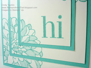 Then I mixed things up. I added some So Saphron cardstock, embossed it and punched some of the yellow polka dot paper with my hexagon punch. I added a sentiment from the Six Sided Sampler stamp set.
